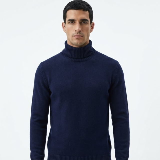 Cuello alto de punto premium. Elegancia que habla por sí sola.